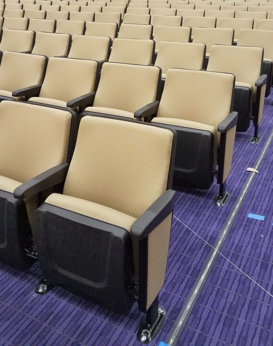 Fixed Seating Installation at Stonehill College in North Easton, MA by Quality Installers.