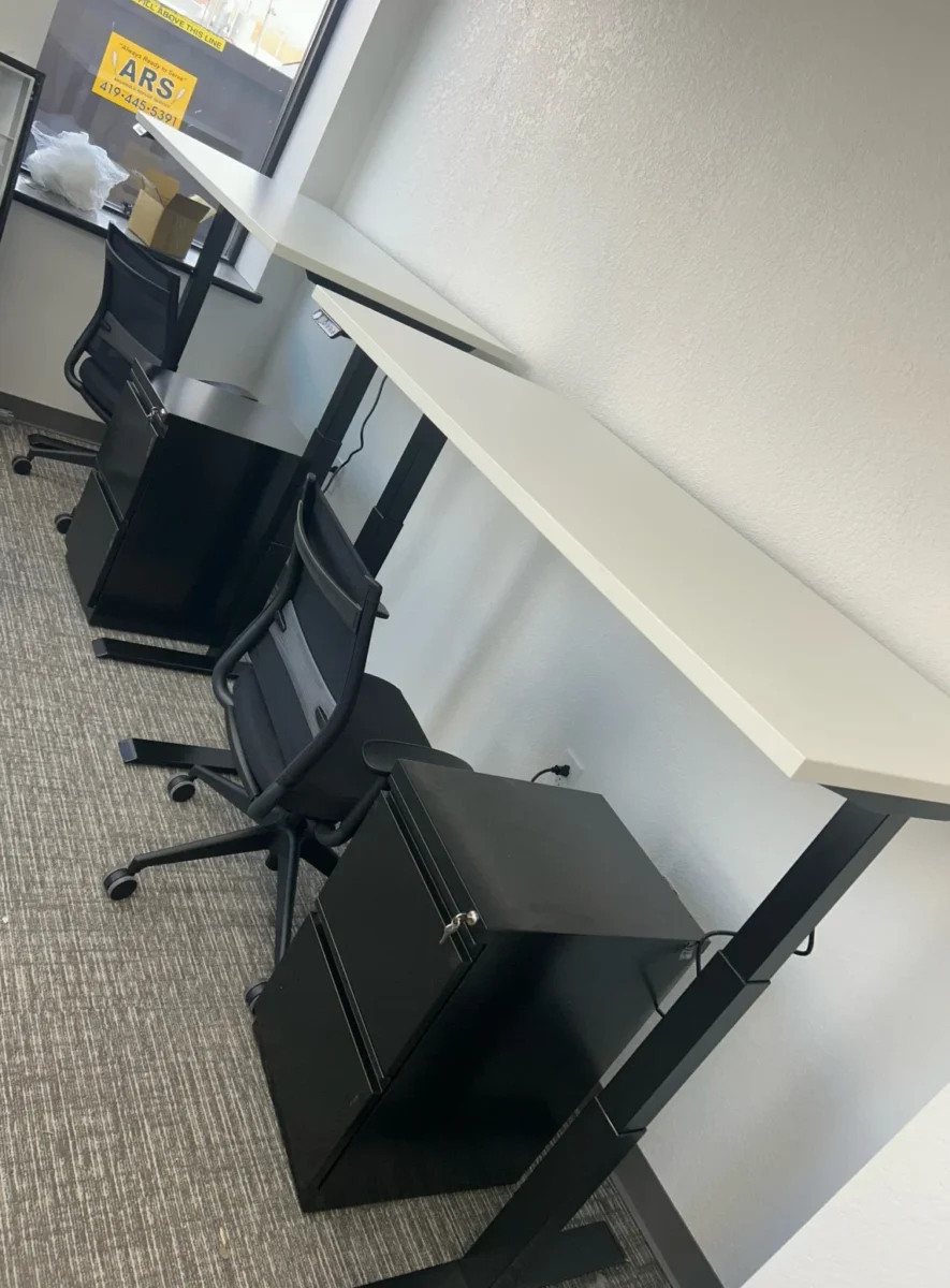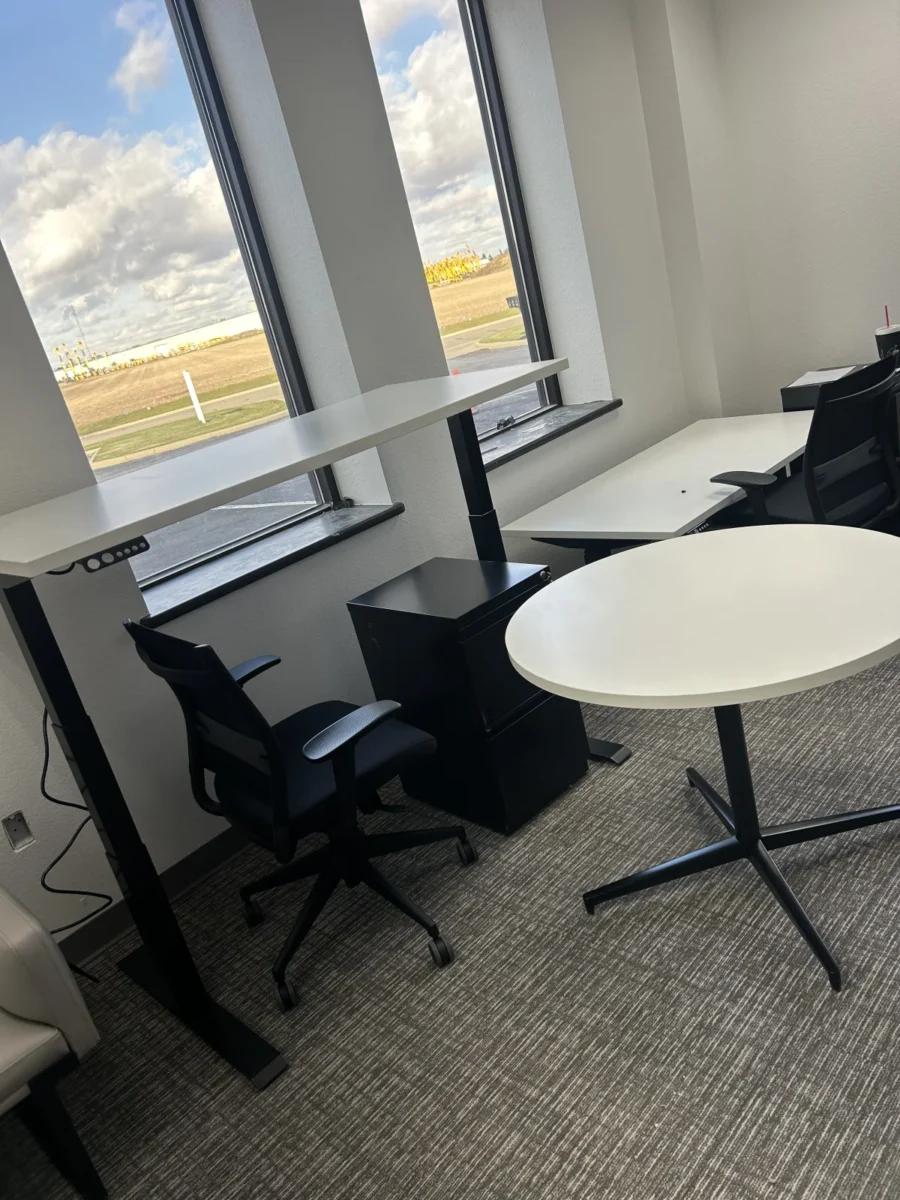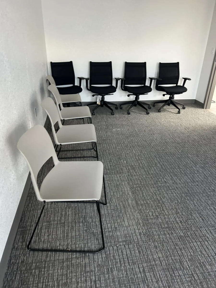 Installing different types of furniture in various parts of the clinic was part of this project. There was one lounge chair, one loveseat, two end tables, four 30-by-60-inch height-adjustable desks, four mobile pedestals, eight task chairs, five Cora midsize chairs, five mobile desks, four mobile stools, one 36-inch table, and four Sprout chairs. Each piece was carefully staged to ensure it was in the right place and that the installation went smoothly.