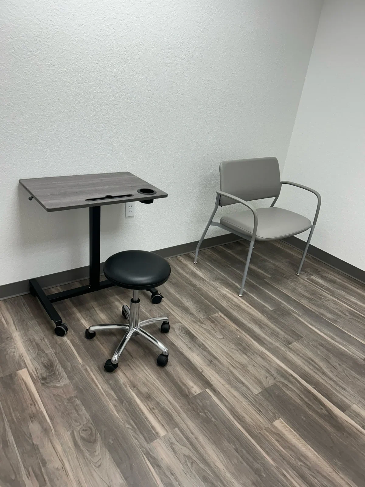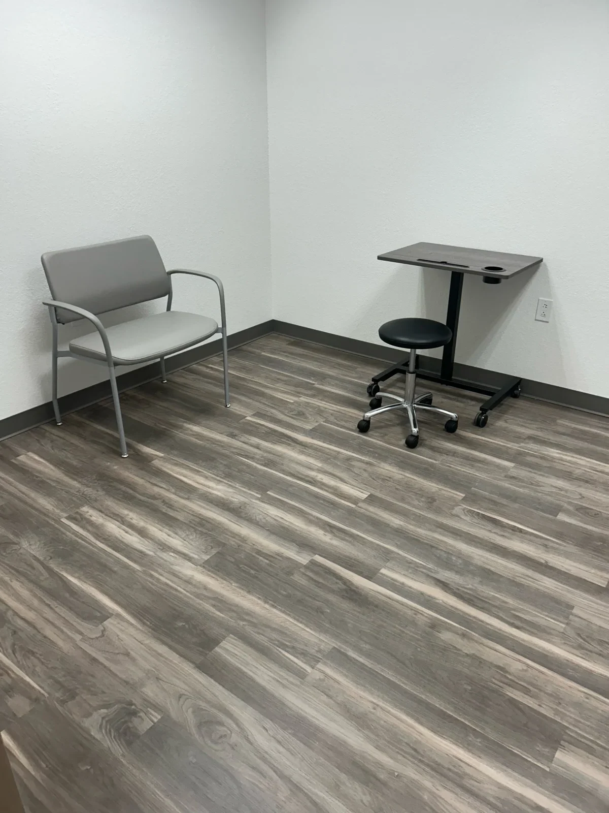 Installing different types of furniture in various parts of the clinic was part of this project. There was one lounge chair, one loveseat, two end tables, four 30-by-60-inch height-adjustable desks, four mobile pedestals, eight task chairs, five Cora midsize chairs, five mobile desks, four mobile stools, one 36-inch table, and four Sprout chairs. Each piece was carefully staged to ensure it was in the right place and that the installation went smoothly.